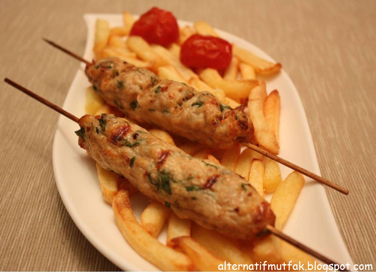 Hazırlanışı: Tavuk eti robotta çekilerek kıyma haline getirilir. (Ben tavuğu alırken kasapta çektirdim) Tavuk kıymanın içine doğranmış soğan, kıyılmış maydanoz, dövülmüş sarımsak, yumurta akı, galeta unu,tuz, karabiber ve kimyon eklenir ve hepsi karıştırılarak yoğurulur. Et çöp şişlere geçirilir ve ızgara da iki tarafı pişene, kızarana kadar iyice pişirilir. Kebap pişince kızarmış patates ve ızgara domates ile beraber servis edilir.